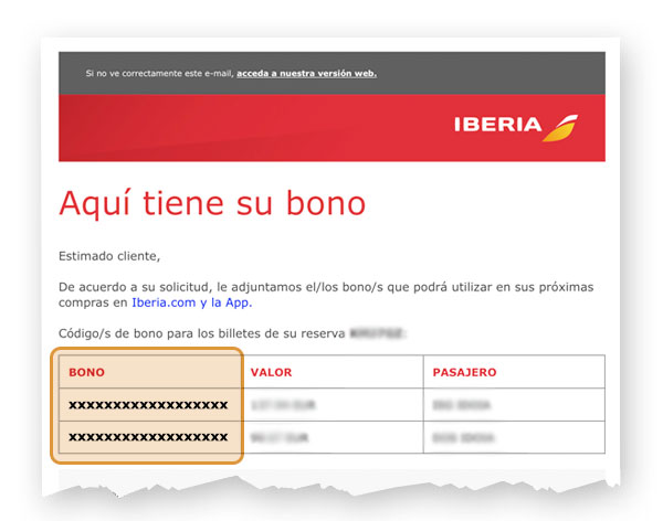 This is what the Iberia voucher looks like: a unique code with a random combination of numbers and letters.
